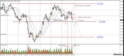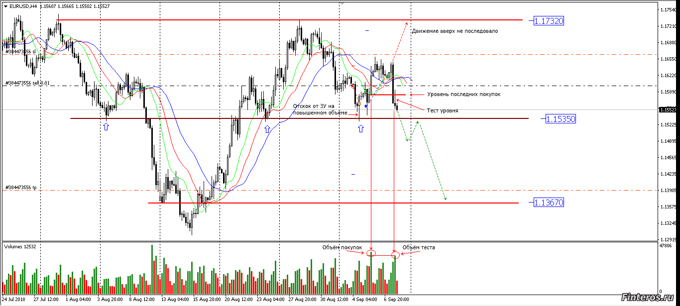 Цена оттолкнулась от верхней границы канала 1.17290, образовав модель Тройная вершина. Такая же модель была на прошедшей недели, но из точки 8 цена пошла вверх. Т.к. цена вверх не пошла, под точку 8 поставил селл-стоп, который сработал и сделка осталась открытой на выходные. На данный момент цена встала на уровне последних крупных покупок с ультравысоким объёмом. Отскок от уровня слабый. Последние два дня падения сопровождаются ростом объёмов. Предполагаю дальнейшее падение до зеркального уровня 1.15380, а дальше два варианта - отскок или пробитие. Надо следить за поведением цены на этом уровне. |