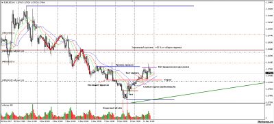 Коррекционное движение вверх после падения. Выше - зеркальный уровень. Спринг слабый, нет объёма. От прошлого уровня продаж были продажи и хвосты свечей. Выставил ордера селл-лимит и селл-стоп