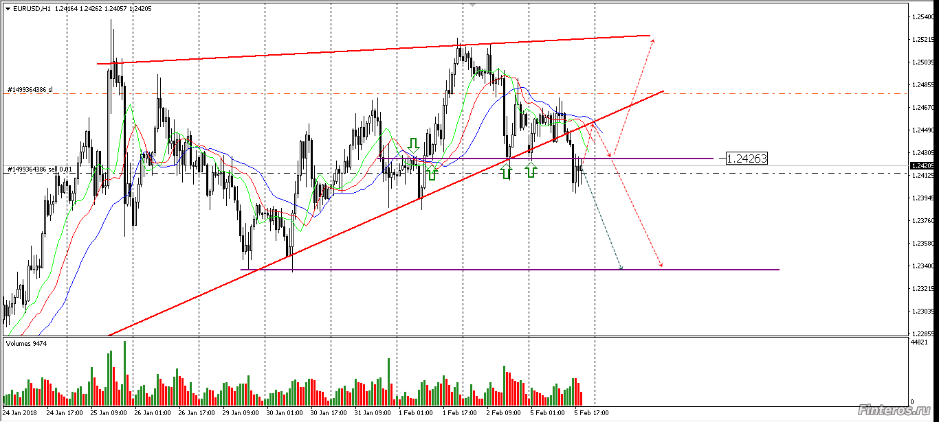 Евро пробил трёхдневный зеркальный уровень 1.24260 на росте объёма. Продал. Теперь надо наблюдать за поведением цены около этого уровня. Отскочет от него и пойдёт вниз или пробьёт его вверх. Признаков разворота пока нет. Но, время спать, что будет ночью - не знаю.