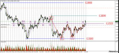 На прошедшей недели совершено две сделки бай. Первая закрылась по стопу, хотя, думаю, всё было сделано правильно. Бай стоп на пробой уровня Материнского бара, стоп под ним. Всё указывало на то, что рост продолжится. Вторая сделка - бай стоп выше уровня хай свечи падения с повышенным объёмом, стоп под свечой SA (Stopping Action) - останавливающий объём. Приближение к границе канала шло на растущих объёмах, пробитие уровня канала на высоком объёме.На уменьшенном Н4 видны два патерна Косая тройная вершина. Сейчас модель повторяется. Первый патерн - пробой правой вершины и продолжение, второй - ложный пробой правой вершины. На патерне 2 виден срыв стопов перед рывком вверх.На уменьшенном Н1 патерн Дракон, но это уже мои фантазии.