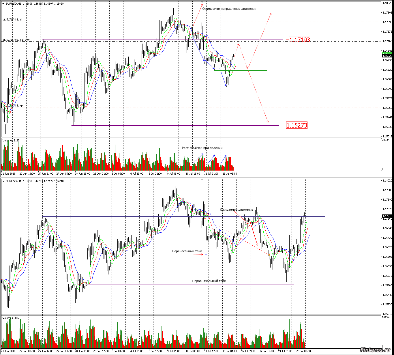 Открытая селл сделка висела две недели и закрылась по перенесённому тейку.