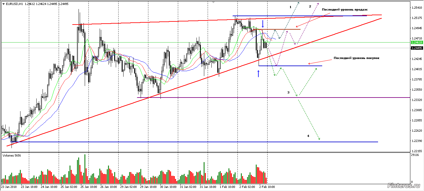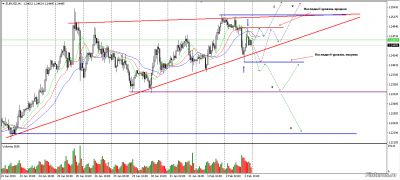 Евро образовал восходящий треугольник, сигнал на продолжение движения. Но восходящий треугольник на вершине рынка часто является ложным. Есть два серьёзных фрактала, последние уровни продаж и покупок. Их пробитие приведёт к росту или падению евро.